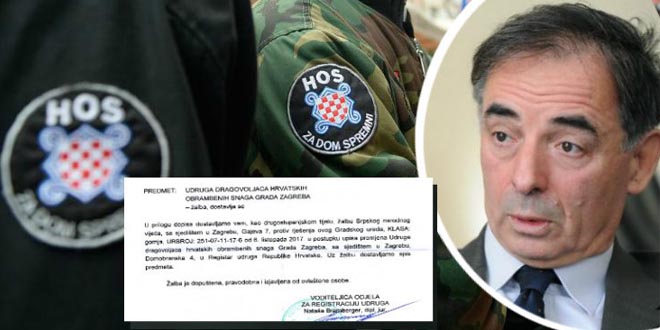 Miloprad Pupovac i Srpsko narodno vijeće tražili su od Gradskog ureda za upravu Grada Zagreba da poništi registracija udruga HOS-a. SNV-u smeta Statut udruga HOS-a, odnosno članak u kojem se govori o pečatu i grbu HOS-a.