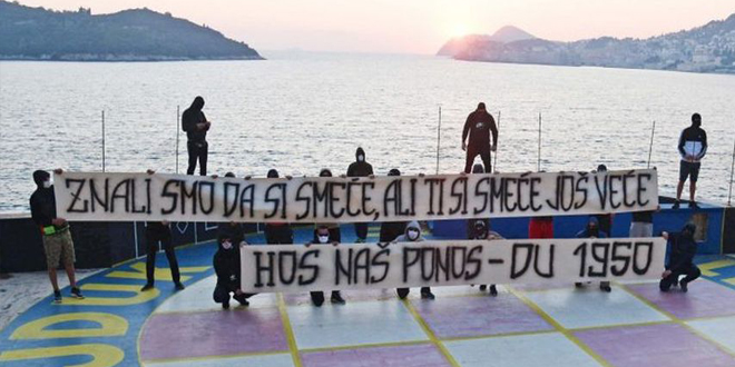 Naime, Torcida Dubrovnik je organizirala bakljadu na Belvederu gdje je podigla je transparent s porukom “Znali smo da si smeće, ali ti si smeće još veće. HOS naš ponos – DU 1950”, piše Libero Portal.